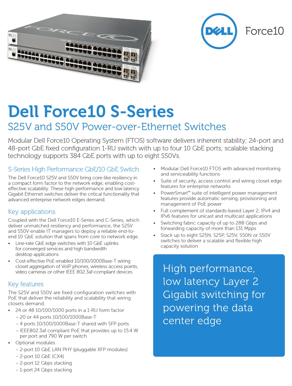 Dell Force10 S4820t Datasheet Manualzz